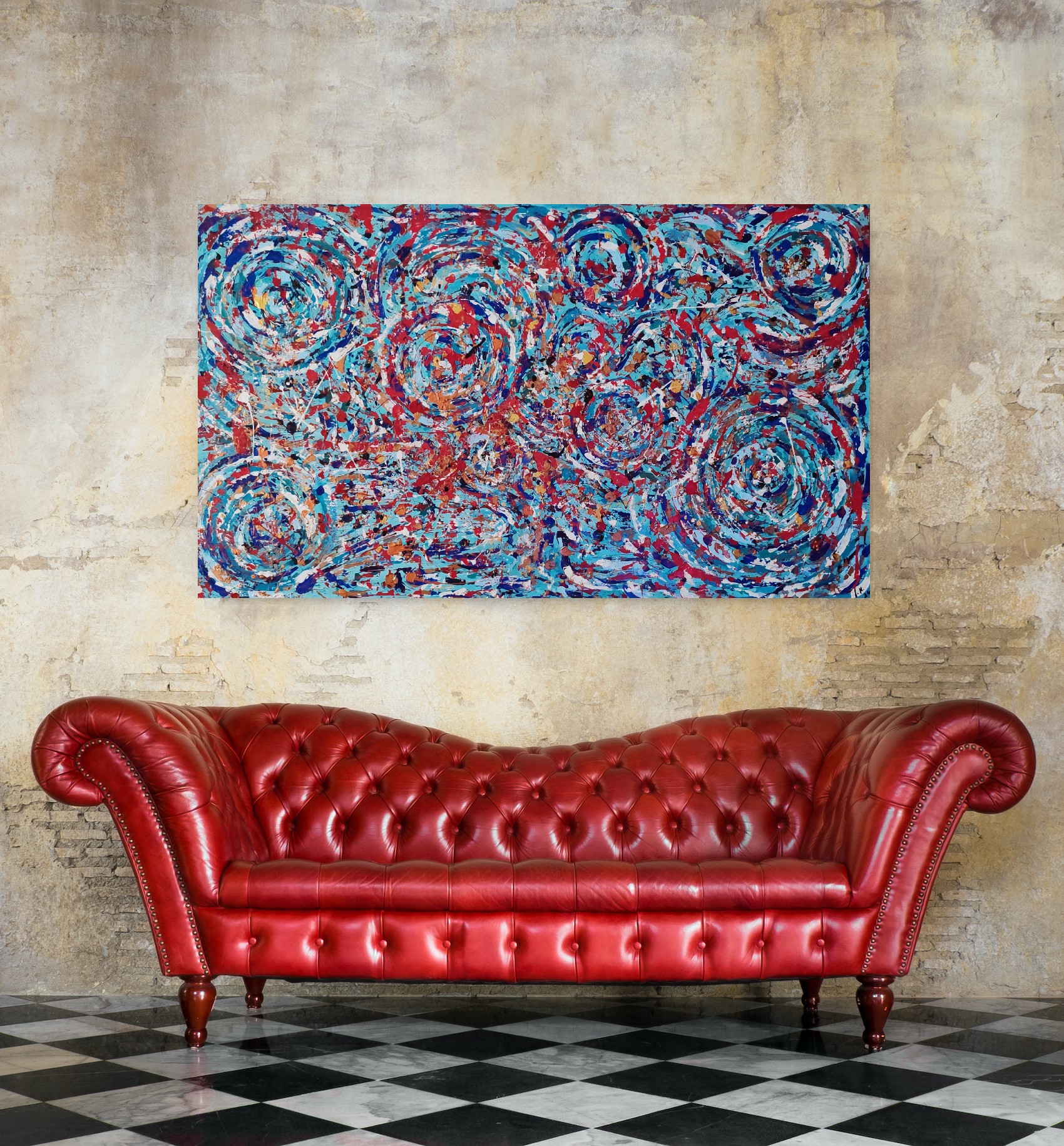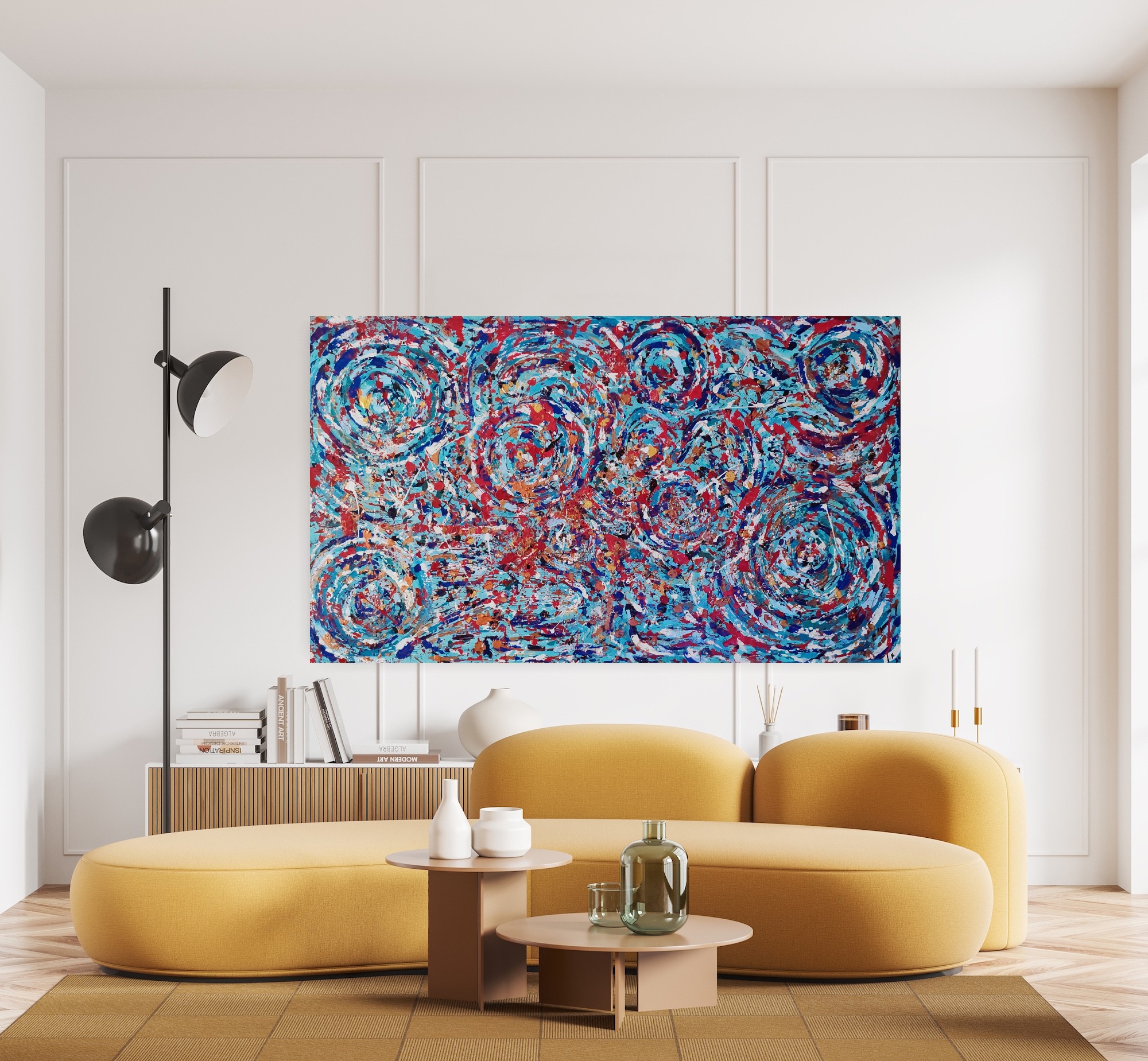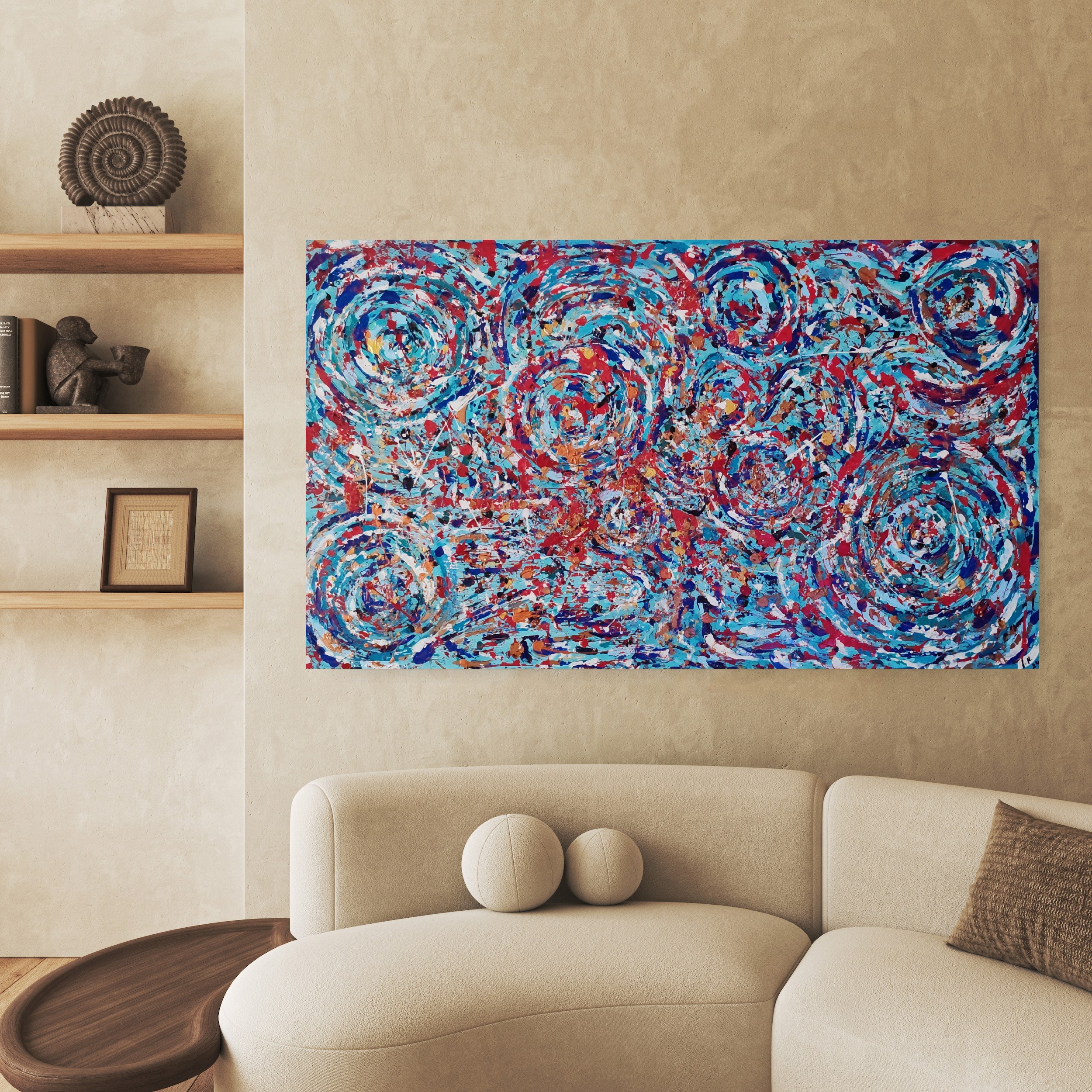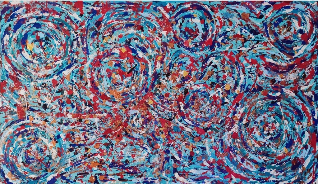Girdap isimli eserim, akrilik boya ve rölyef ile renklendirilmiştir.Dokulu ve kabartmalıdır.170*100 ebatında olup, asılmaya hazırdır.