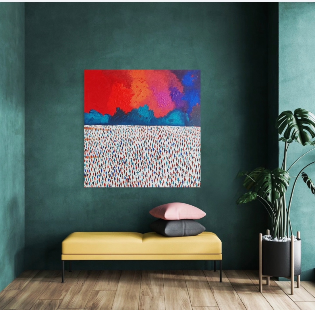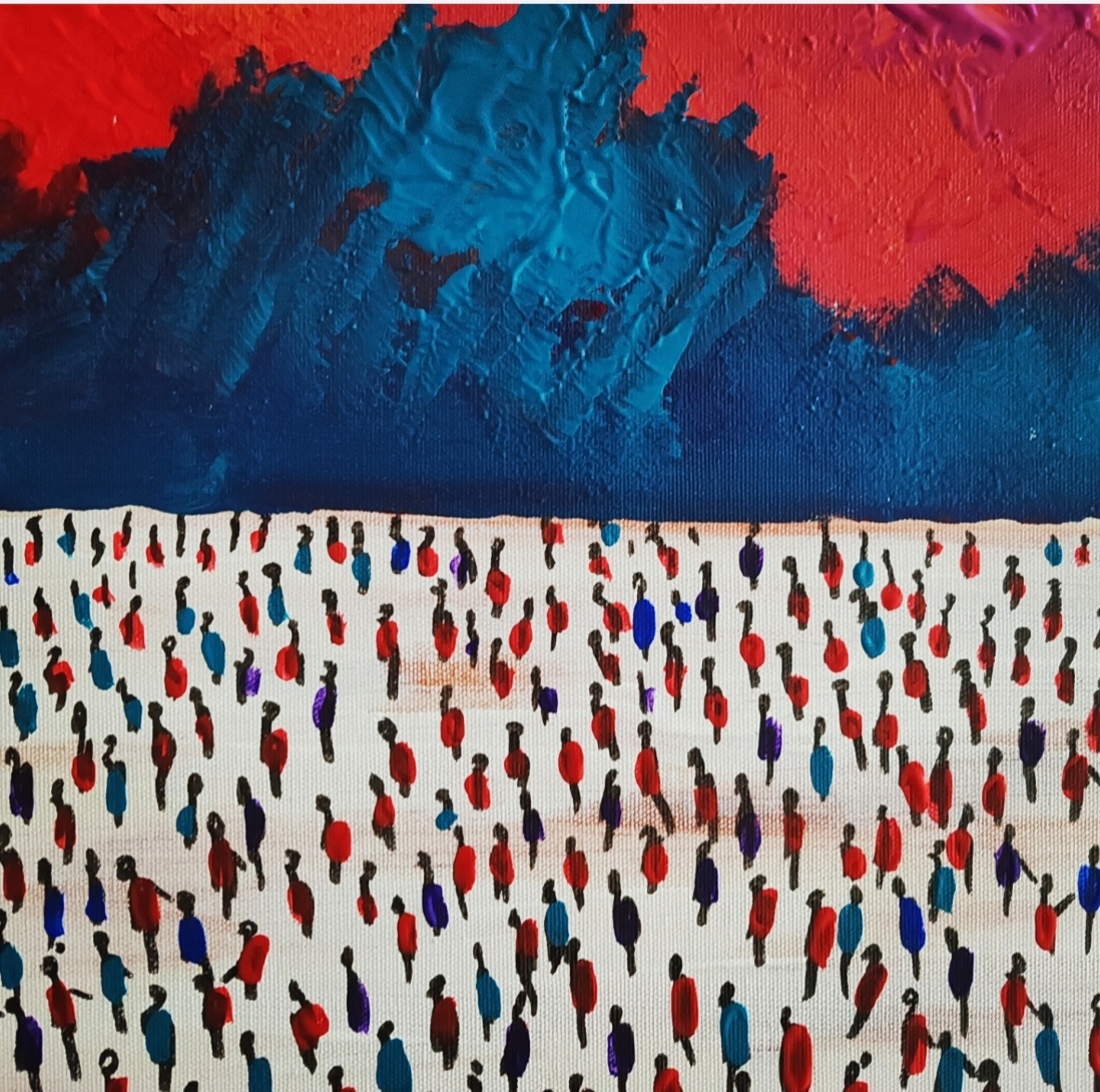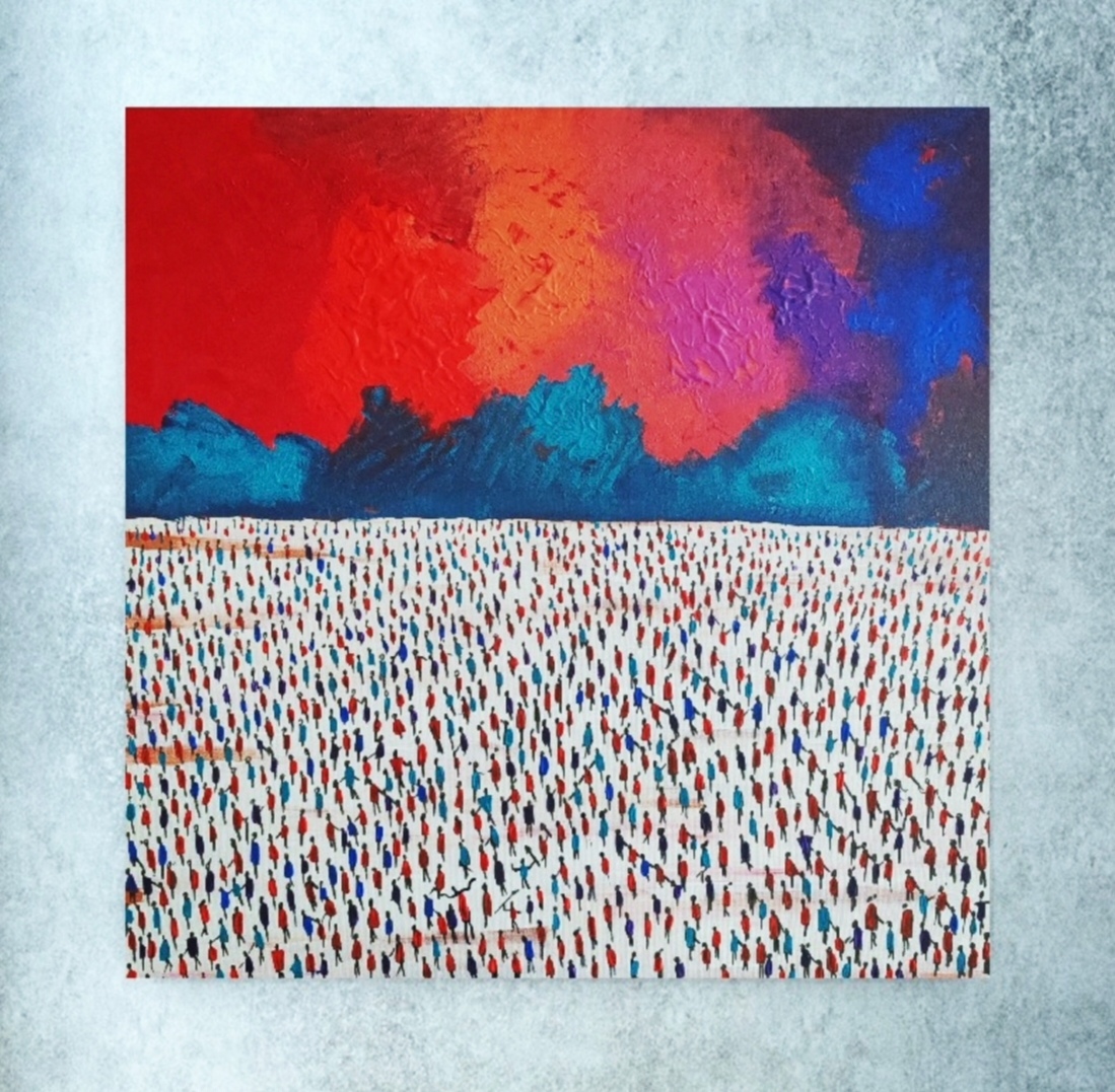 Göç isimli eserim, el çizimi olup akrilik boya ile renklendirilmiştir.100*100 ebatında olup, asılmaya hazırdır.