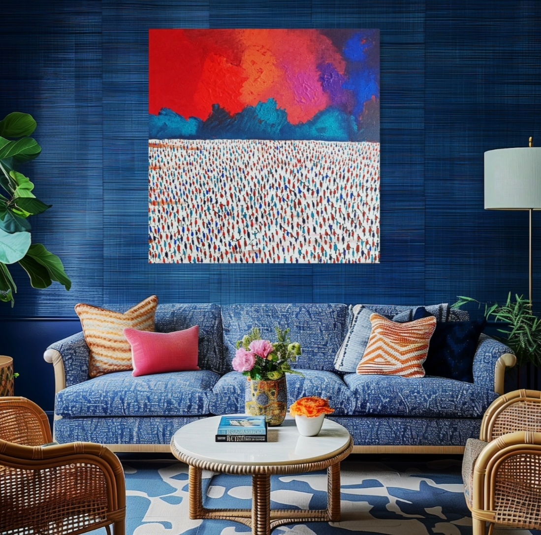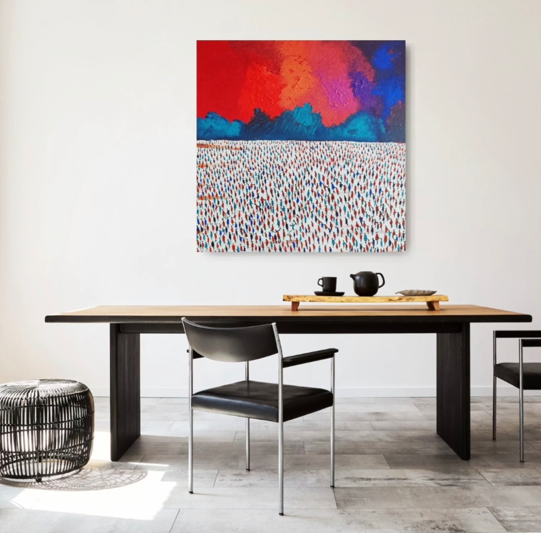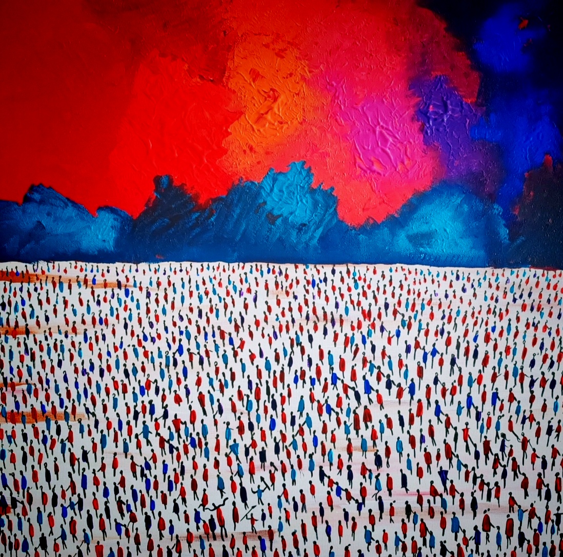 Göç isimli eserim, el çizimi olup akrilik boya ile renklendirilmiştir.100*100 ebatında olup, asılmaya hazırdır.
