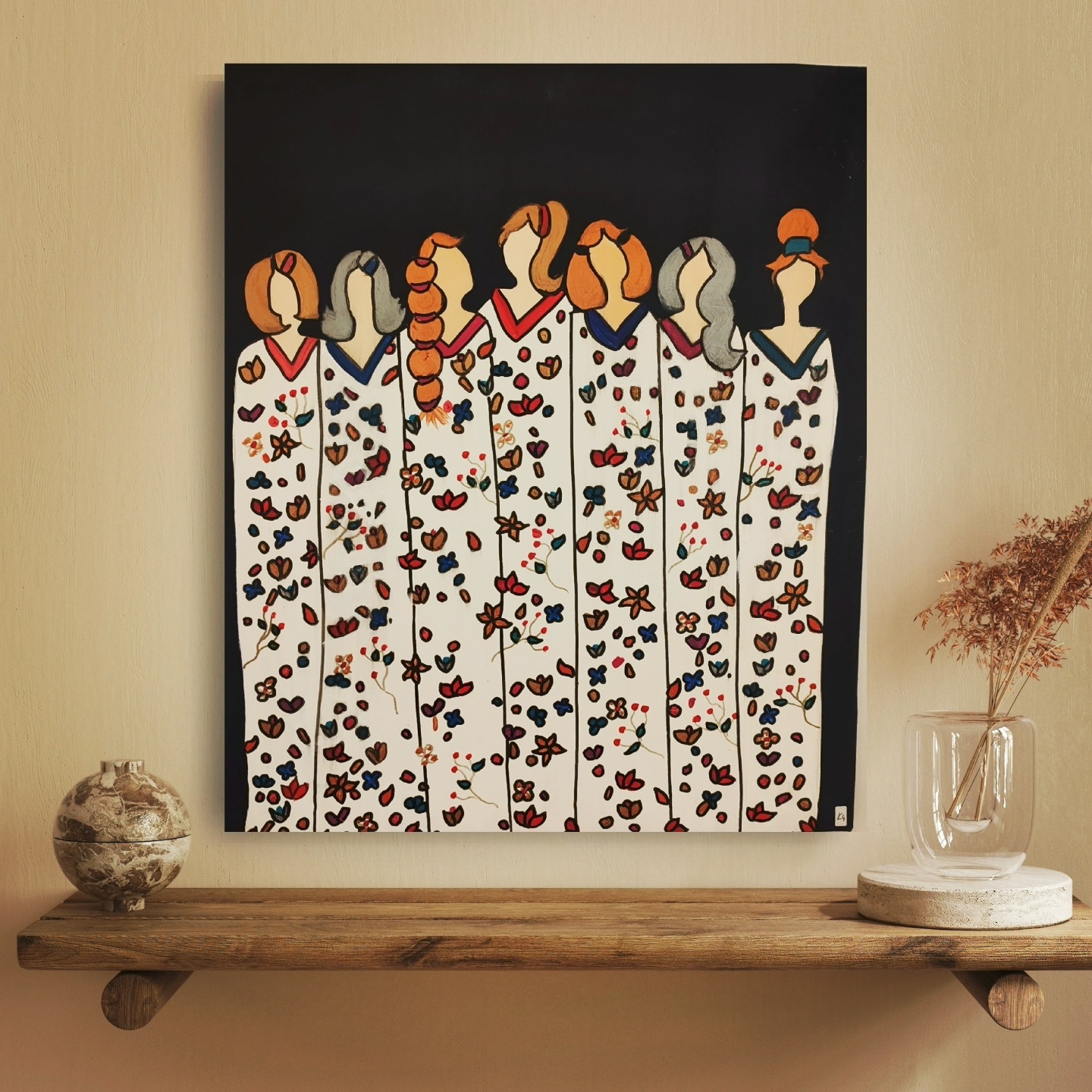 Kadın Kadına Bahar adlı eserim 60*50 ebatında olup akrilik ile renklendirilmiştir, asılmaya hazırdır.